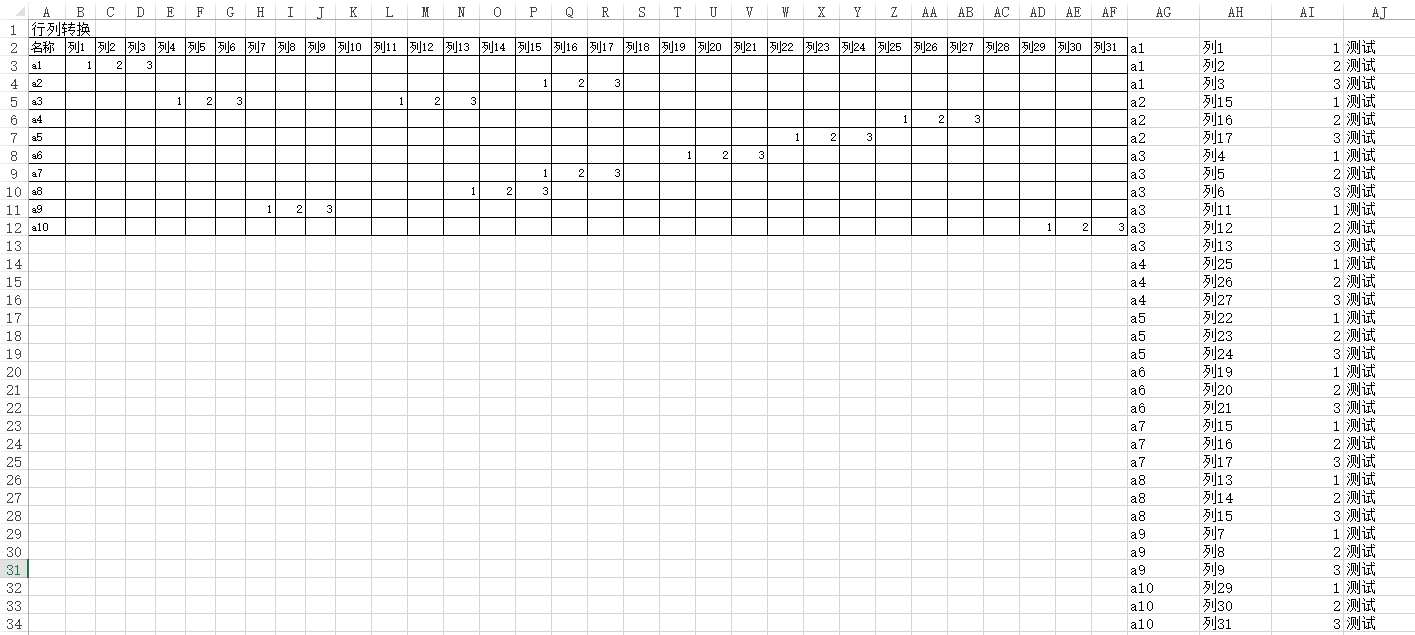 Excel行列转换
