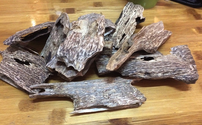 不过,现实中大量存在的,确实是一些半香半木的“沉香”。就是油脂分泌后尚未结香或结香时间太短,木材还没有变成真正的香体,但已有了油脂的浸渗,这就形成了沉香与沉香木界限不清,良莠难分的痼疾。市场上贱卖的“沉香”更多是沉香木或某种类似沉香木花纹的木材,再浸入仿沉香味的化学油脂而制成的假沉香,据估计占了大众沉香市场的九成份额。